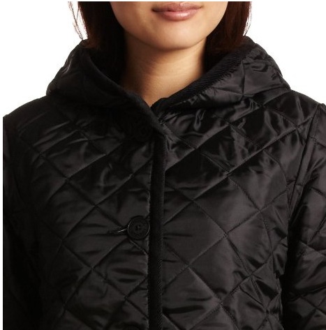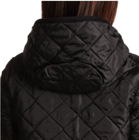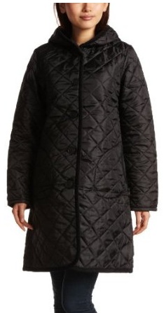 フード付きキルティングロングコート